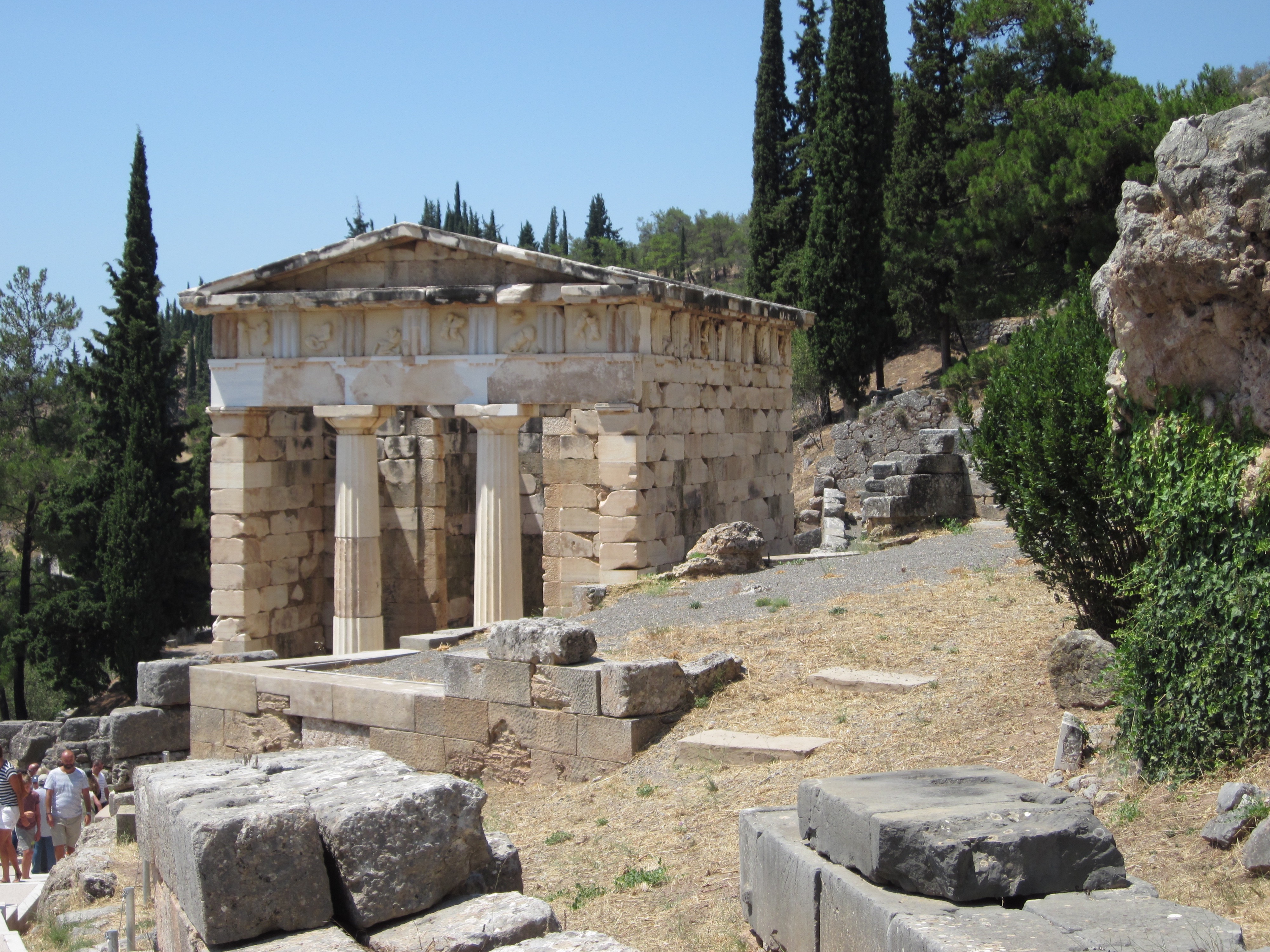 Initially there was only one Pythia, and she only prophesied on Apollo’s birthday (sometime around the 7th of February or March.) Later on she worked full time, and as her notoriety grew, two more employees were added, and then they started franchising to other local areas based on supply and demand. Just like the 700 Club, the money came pouring in, so they built a Treasury. This has been fully restored on the site, and you can tell from the different colored stones.