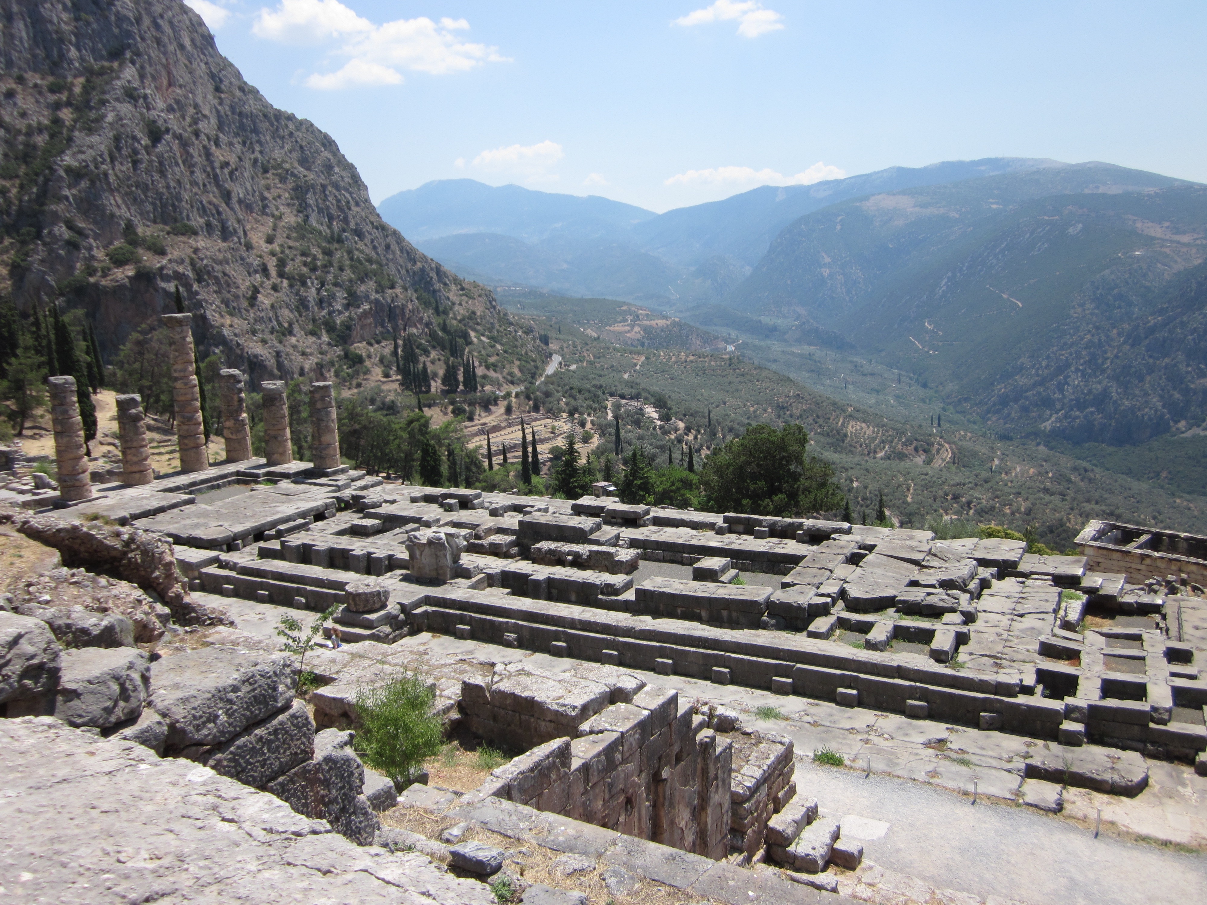 Delphi’s glory began in Mycenaean times, but it really started rocking when the cult of Apollo developed here around the 8th century BCE, and the first temple was built. I say first temple because it was just a hut, but like the story of the Three Little Pigs, that wasn’t good enough. So a second mythical temple was built of wax and feathers but, you guessed it, it didn’t last. The third temple was made of bronze, and I don’t know why that one didn’t make the cut, but the fourth one was built of limestone around the 4th Century BCE, and that one seemed to work pretty well. All this reminds me of “Swamp Castle.”
